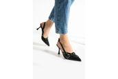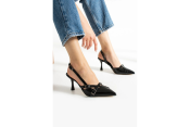 Çift Bantlı Toka Detaylı Siyah Rugan Kadın Topuklu Ayakkabı
