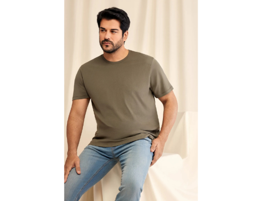Erkek Haki %100 Pamuk Slim Fit Dar Kesim Bisiklet Yaka Basic Tişört