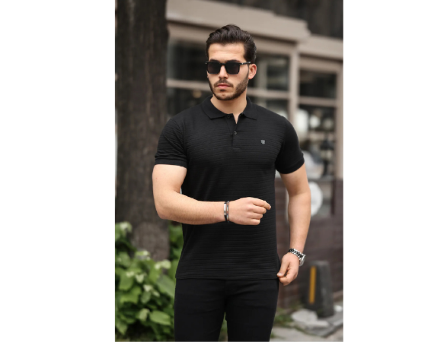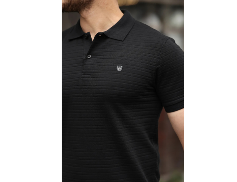 Erkek %100 Pamuklu Kumaş Slim Fit Kesim Siyah Polo Yaka T-shirt