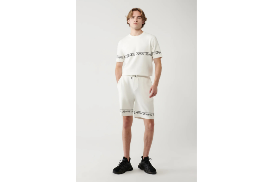 Erkek Beyaz Yandan Cepli Baskılı Soft Touch Şort A41y3646