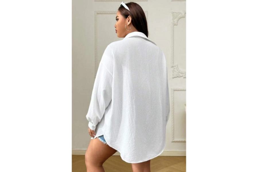 Kadın Beyaz Tek Cepli Bürümcük Oversize Gömlek